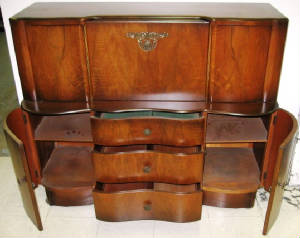 Walnut with Golden Sycamore Bar Service & Quadruple Mechanism, Circa 1940's...